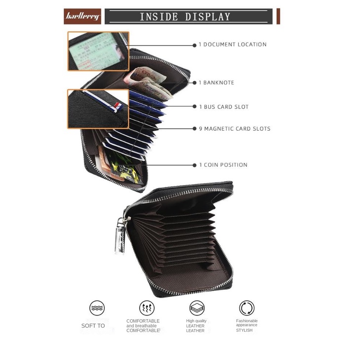 【Crazy Bag】New Fashion Leather Men Card Case Wallet Organ Multifunctional Wallet Zipper Small Wallet Coin Purse