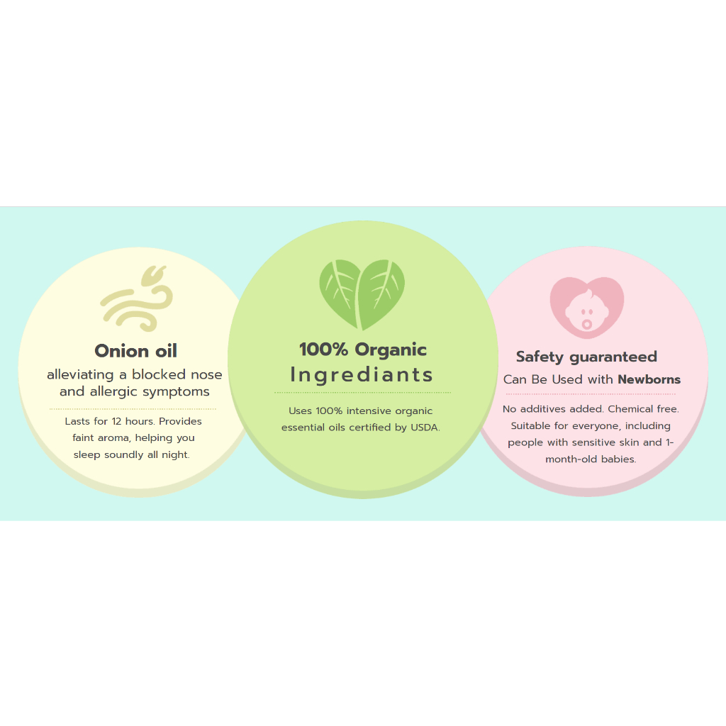 Happy Noz Organic Onion Sticker Patch / Onion Oil - Relieve Colds, Nose Congestion & Snots / Dragkooler Fever Wipes