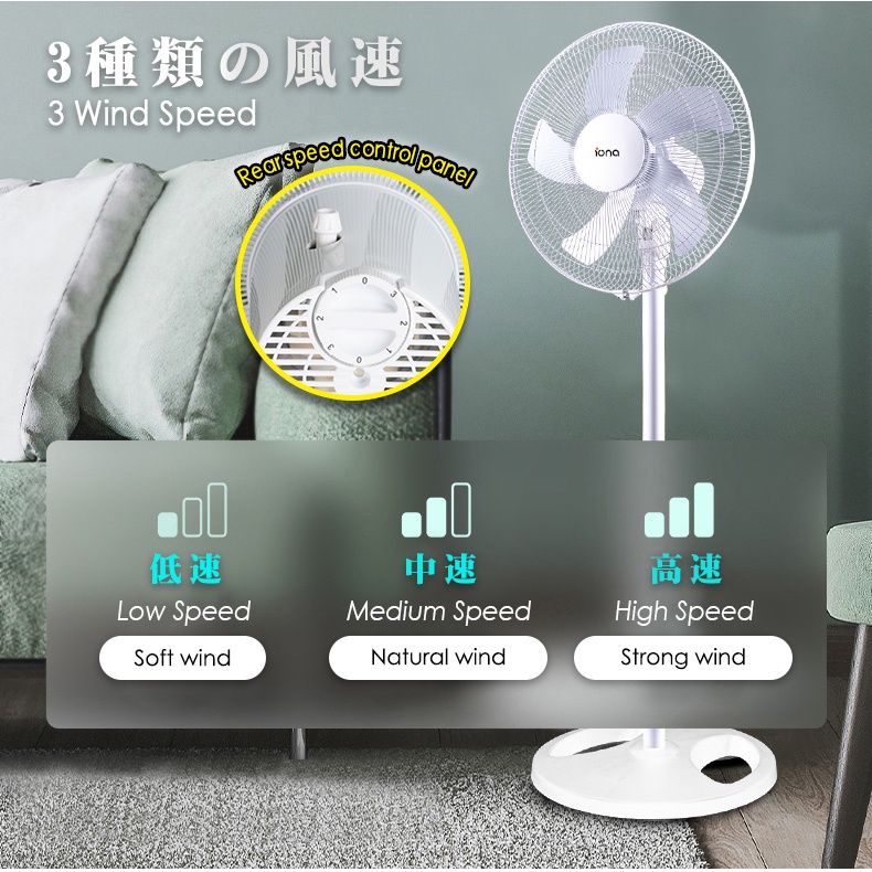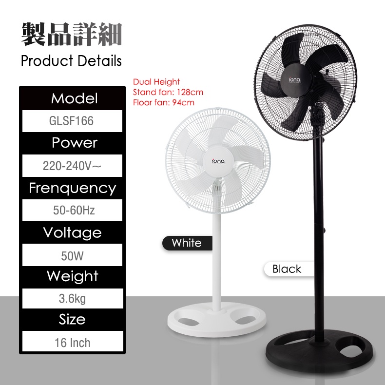 IONA 16" 5 Blade Black White Adjustable Stand Standing Fan | Electric Tatami Fan 家用风扇 風扇 - GLSF166