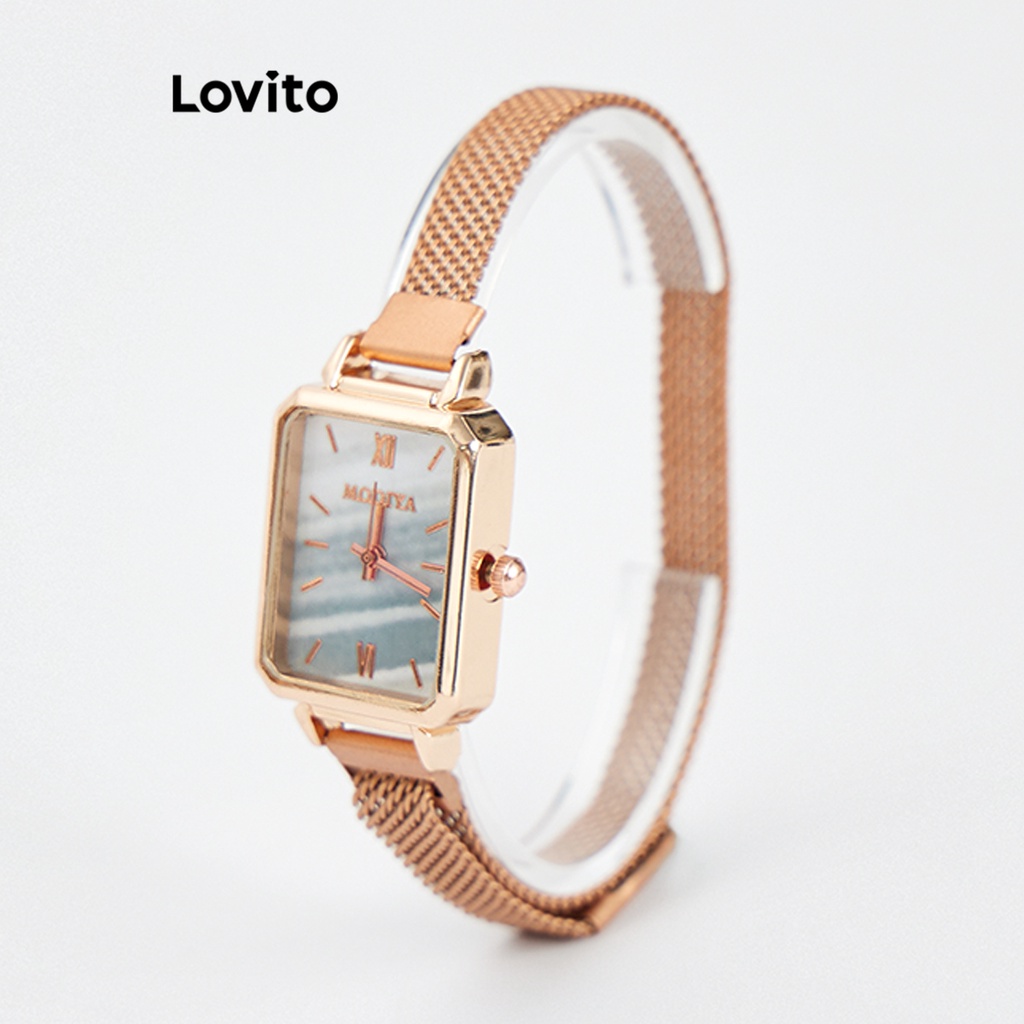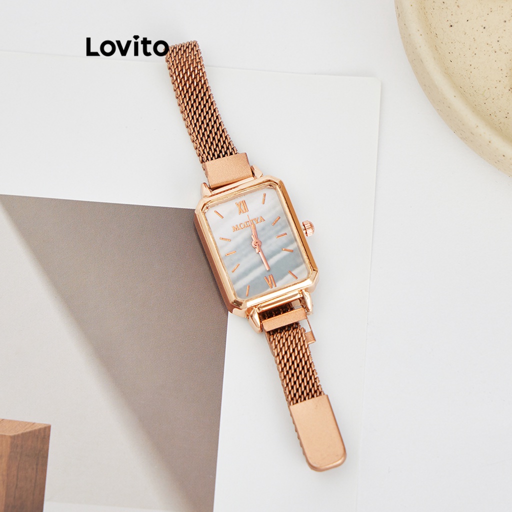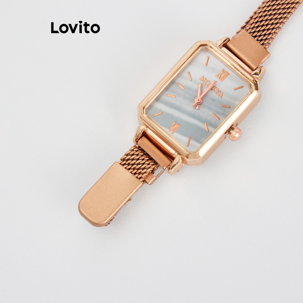 Lovito Casual Plain Basic Quartz Watche for Women L69AD054 (Gold)