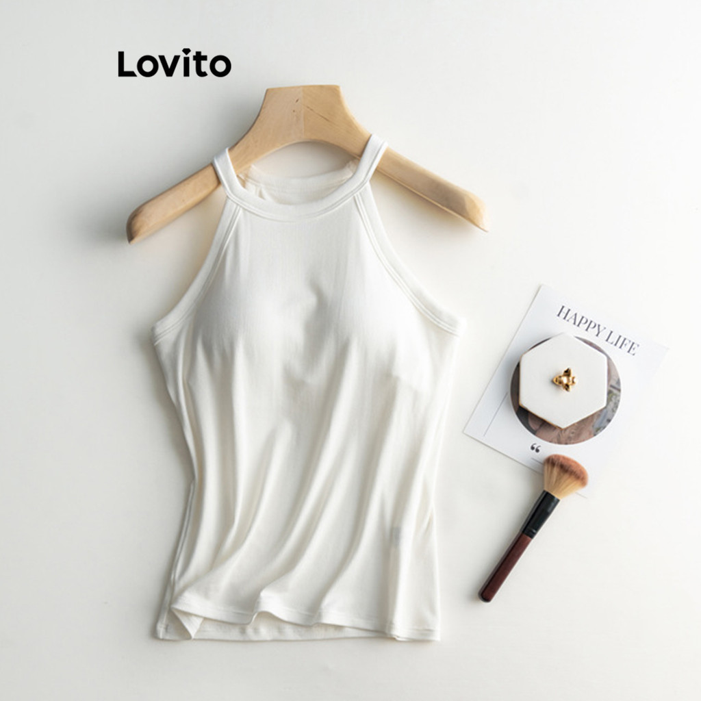 Lovito Casual Plain Chest Pad Tank Top for Women LNL36137 (Khaki/Apricot/Grey/White/Black)