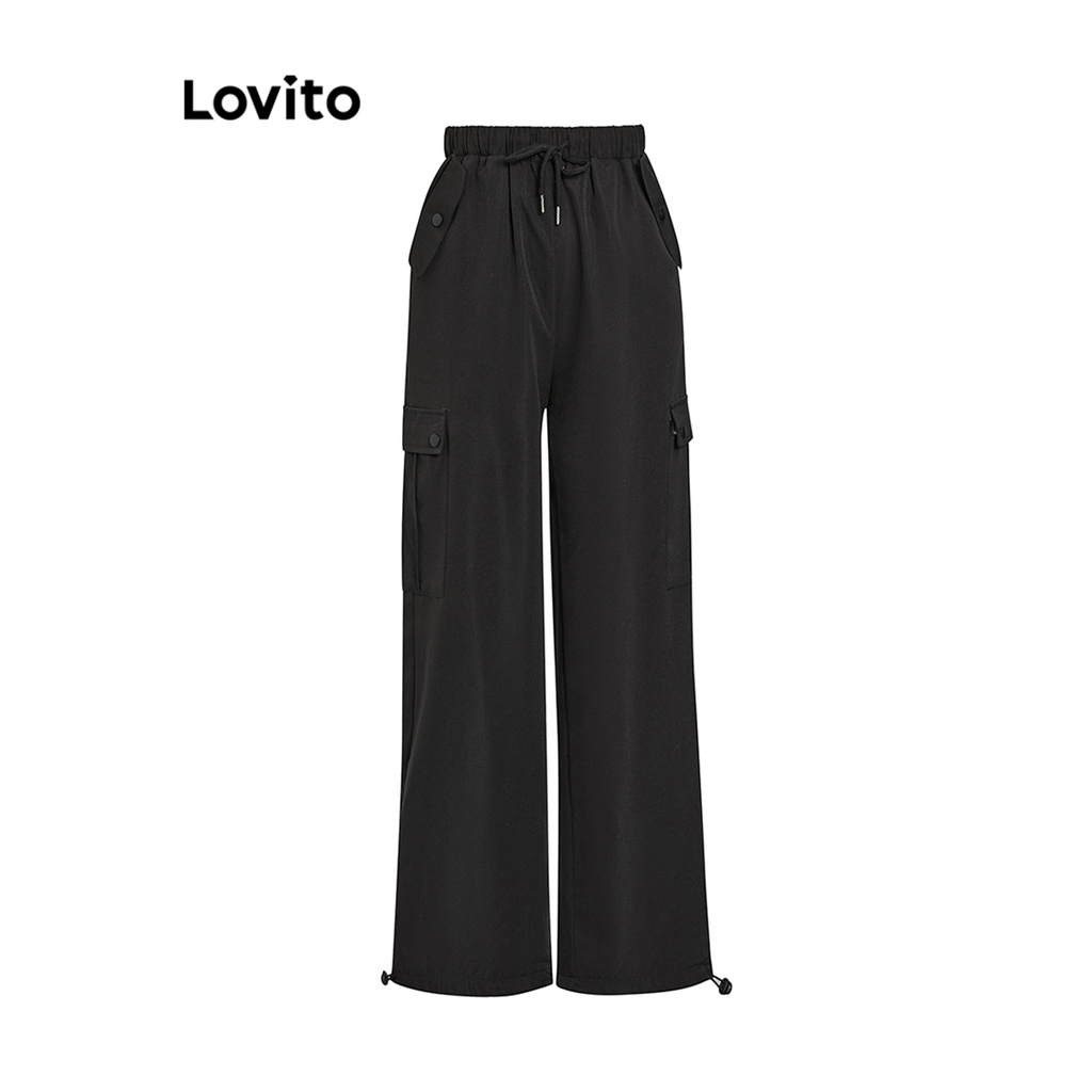 Lovito Casual Plain Pocket Lace Up Pants for Women L68ED106 (Pink/Black)