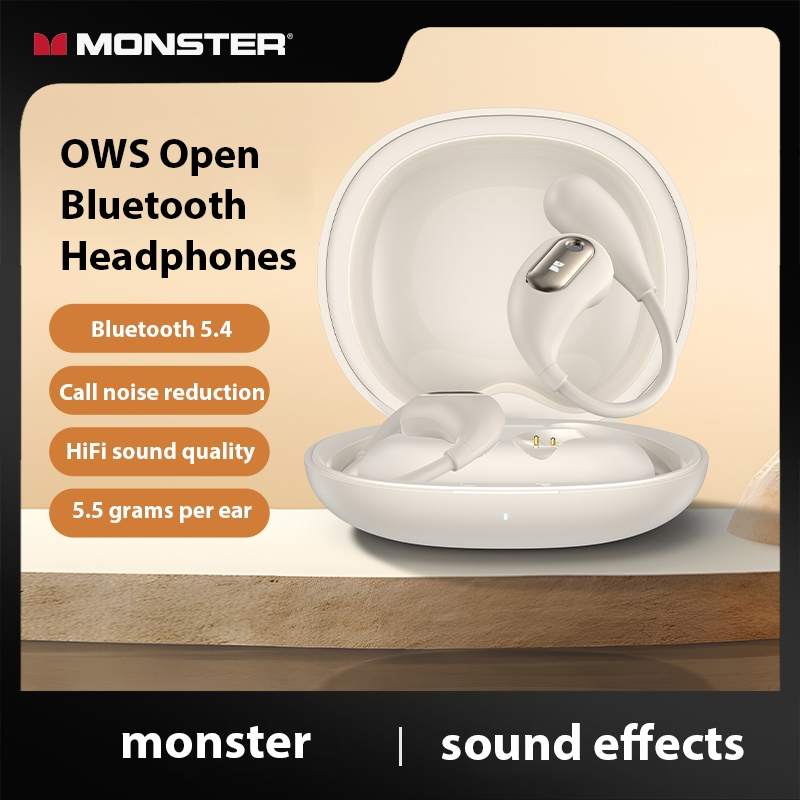 Monster 5.4 Bluetooth Earphone MH22181 OWS Fully Open Ear Earbuds IPX5 Waterproof Wireless Headphone Bluetooth Noise-Cancelling Stereo