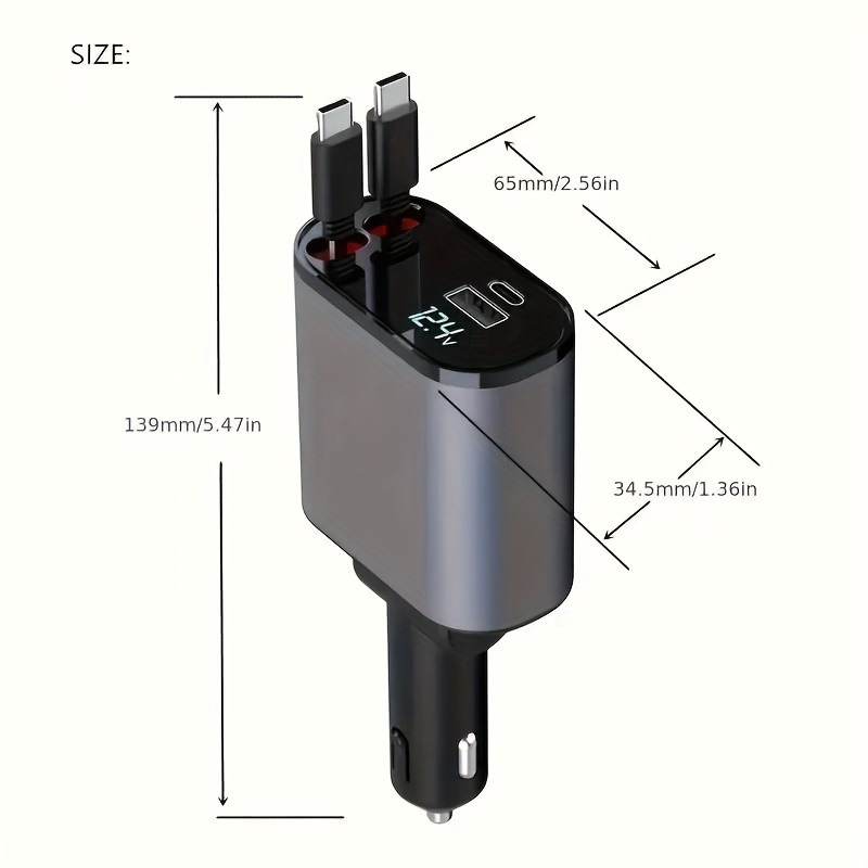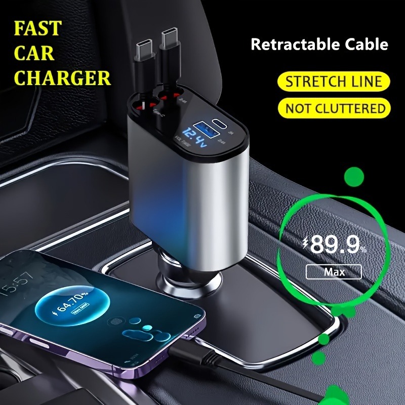 Retractable Car Charger, 4-in-1 Fast Car Phone Charger, Retractable Cable And 2 USB Ports Car Charger Adapter For Android Phones, Auto Accessories Interior