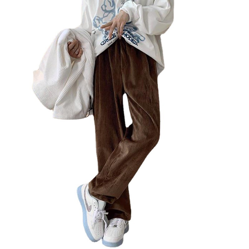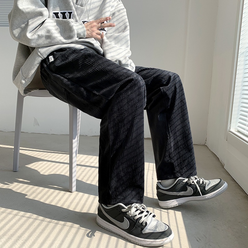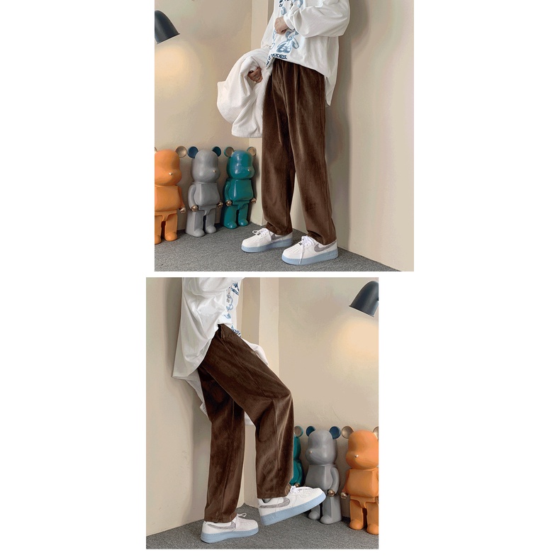 Retro Brown High Street ins Street Wear Corduroy Wide Leg Casual Trousers Men