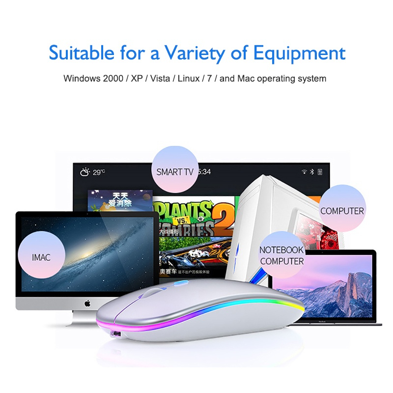 (SG STOCK) Wireless Mouse Rgb Led 2.4Ghz Silent Rechargeable 1600dpi Slim Portable With USB Receiver Computer PC Laptop